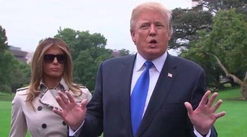 La teoría de que el presidente está utilizando una doble de su esposa surge luego de que circulara en las redes sociales el vídeo de una conferencia de prensa del presidente Donald Trump junto a una Melania de nariz más ancha y rostro diferente.