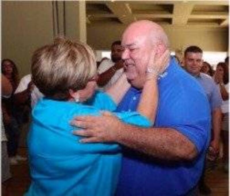 Johnny, sin duda, gozó. Aquí, remolcándole la alegría a Primitivo. ¿Johnny, MVP de la Convención?