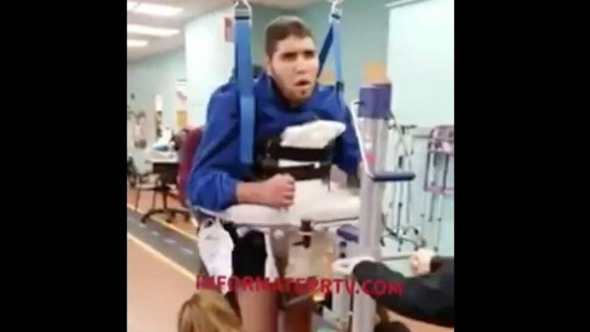 El video colgado en las redes sociales, muestra cómo el joven de 25 años camina con asistencia de profesionales de la salud.