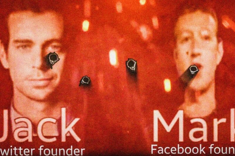 El video fue publicado por Vocativ, una compañía que funciona dentro de la llamada 'Deep Web'. En él aparecen las caras “baleadas” de Jack Dorsey y Mark Zuckerberg en un fondo que simula llamas rojas.