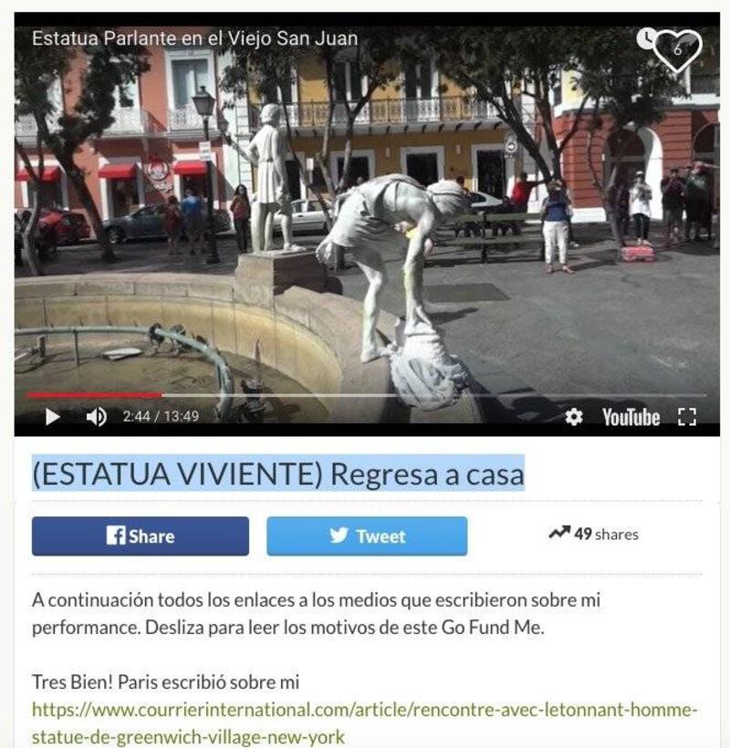 ''Quiero volver a Plaza de Armas a trabajar como estatua viviente. Al menos durante un tiempo… Entre marzo y abril podré regresar al Washington Square Park de New York City'', explica González en una campaña de GoFundMe bajo el titulo Estatua viviente regresa a casa, cuyas recaudaciones podrían costar su viaje de regreso.