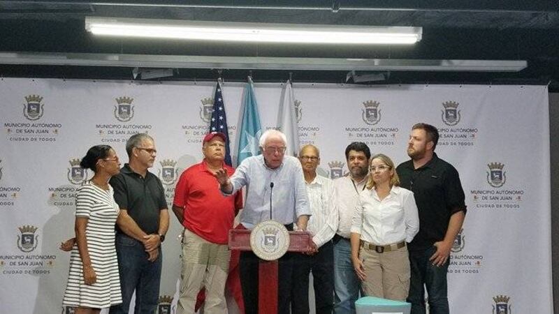 Durante la rueda de prensa con Sanders estuvo presente la vicealcaldesa de Vieques, Daisy Cruz; el alcalde de Comerío, Josian Santiago; el presidente de la Unión de Trabajadores de la Industria de Electricidad y Riego (UTIER), Ángel Figueroa Jaramillo; y el presidente de la organización no gubernamental Operation Blessings, David Darg; y el representante a la Cámara por el Partido Popular Democrático, Luis Vega Ramos.