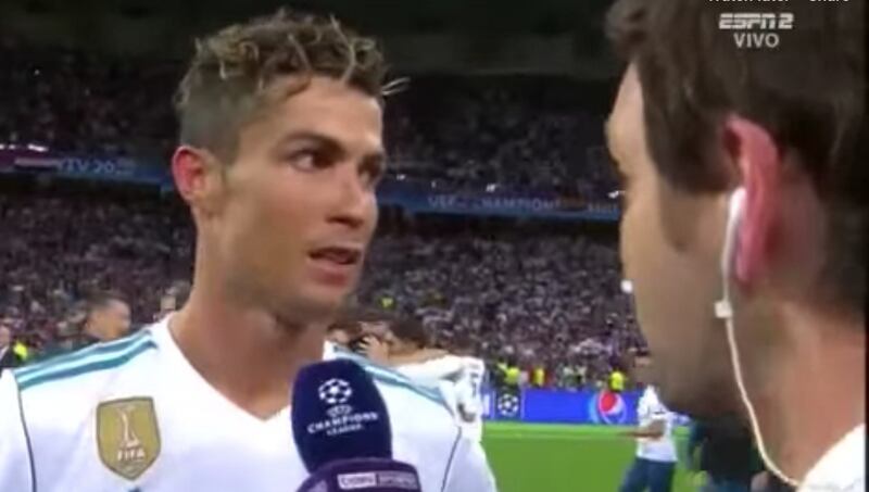 Inmediatamente después de ganar su tercer título consecutivo en la Liga de Campeones, Cristiano Ronaldo habló del Real Madrid en tiempo pasado.