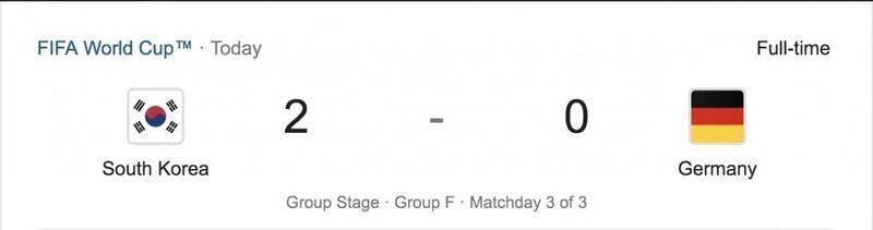 Aunque Alemania fue derrotado por Corea, este último ya estaba eliminado, si Alemania metía más de dos goles y México perdía contra Suecia, Alemania pasaba por diferencia de goles.