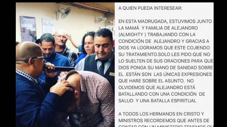 En un mensaje repleto de errores ortográficos, el pastor del combo de setenta resaltó que Alejandro Mosqueda, nombre terrenal del ente de luz apodado Almighty, “está batallando con una condición de salud y una batalla espiritual”. Dijo además que se mantiene en comunicación con la madre de este siervo.