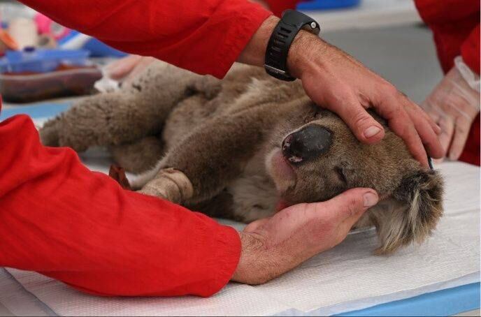 Para ser intervenido en una mesa quirúrgica, ubicada en una ya atestada tienda de campaña, el koala debió ser sedado para que sus heridas y quemaduras puedan ser curadas. “Se está recuperando muy bien”, aseguró, a la AFP, tras la intervención el veterinario Peter Hutchison.