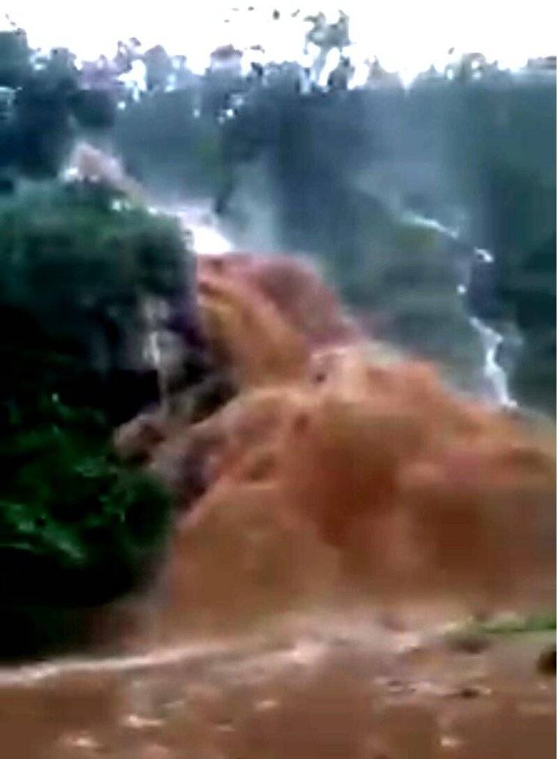 La roca sigue en su lugar y ayer generó la cascada que puede apreciarse en las fotografías, pues la lluvia provocó que la corriente que naturalmente discurre por el lugar choca contra la roca y evita el drenaje normal.