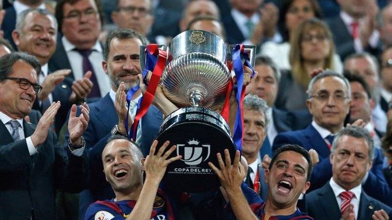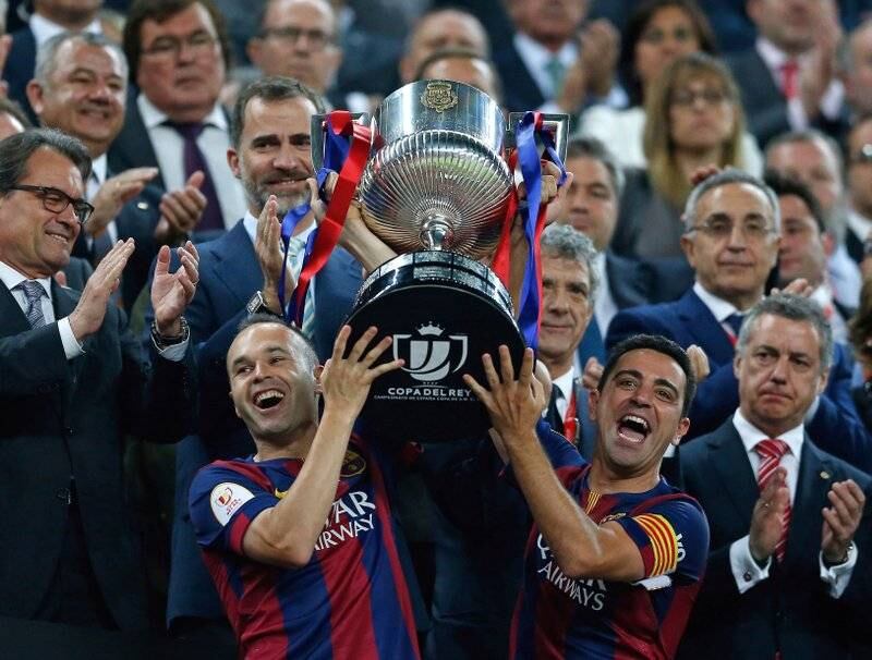 Con la camiseta azulgrana, Iniesta anotó en la victoria 5-0 sobre Sevilla para ganar el fin de semana pasado la cuarta Copa del Rey en fila. Fue del 31er cetro para él y para Messi con el Barcelona, record del club. Ahora, el Barsa necesita solamente ganar uno de los cinco partidos que le quedan para llevarse el título de la Liga.