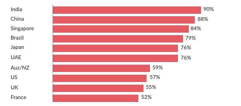 En China, un 77% de los empleados han adoptado el uso esta tecnología, es decir, más de doble que países como Francia (32%) y Japón (29%).