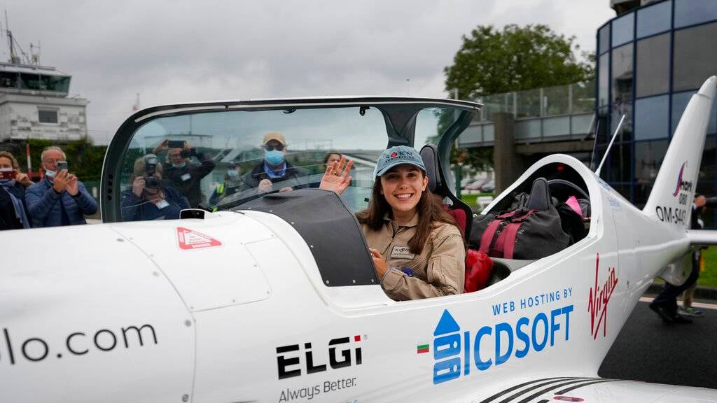 Una joven belga-británica se hizo al aire el miércoles, empeñada en ser la mujer más joven en dar la vuelta al mundo piloteando en solitario.