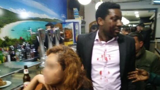 “He sufrido un ataque de índole racista ésta mañana [ayer] en una cafetería multiracial de nuestra querida Madrid. Habiéndome acercado a la barra para solicitar unos cuantos cafés la chica que aparece en la foto, se gira y me dice no quiero negros de mierda detrás mío.