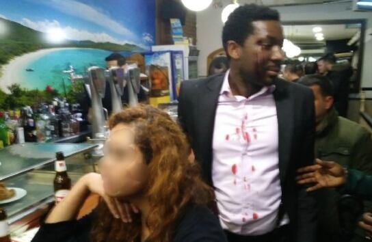 “He sufrido un ataque de índole racista ésta mañana [ayer] en una cafetería multiracial de nuestra querida Madrid. Habiéndome acercado a la barra para solicitar unos cuantos cafés la chica que aparece en la foto, se gira y me dice no quiero negros de mierda detrás mío.