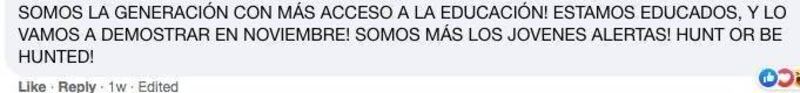 “Somos la generación com más acceso a la educación! Estamos educados, y lo vamos a demostrar en noviembre! Somos más los jóvenes alertas! Hunt or be hunted”… ¿En serio? Sí, así fue el mensaje de este victoriano-huntergamero, pero en CAPSLOCK.