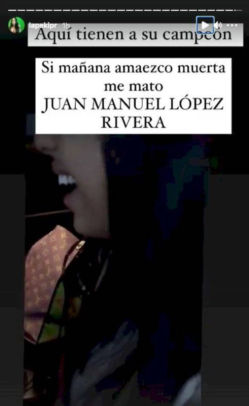 Ojeda publicó también un video que, según dijo, fue grabado por el mismo López Rivera en un intento de humillarla. Aunque no se aprecia el rostro del hombre, se escucha mientras la insulta y le dice: “te voy a matar cabr***”.