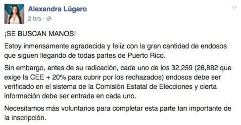 En el pasado, Lúgaro expresó preocupación y molestia por la alta cantidad de endosos que le habían rechazado en las etapas iniciales de su proceso de inscripción.