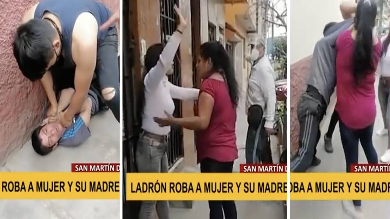 Los vecinos habrían realizado una detención ciudadana y, mientras esperaban la llegada de la policía, apareció la madre del sujeto dando explicaciones por su hijo.