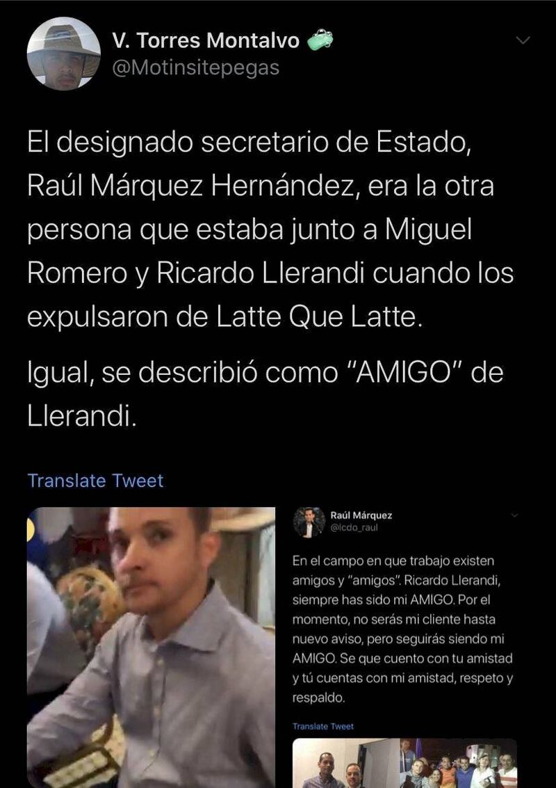 Cada vez que leo al nuevo secretario de Estado en Twitter, Raúl Márquez, y que btw lo tuvimos como Gobernador estos días, solo me acuerdo a Rosselló, hijo, pero con menos capacidad … y eso está fuerte… Ricky es Ricky y los demás se ven como sus seguidores… Y eso de los buenos días por Twitter, ¿no les viene a la mente el derrotado Ricardo Rosselló?