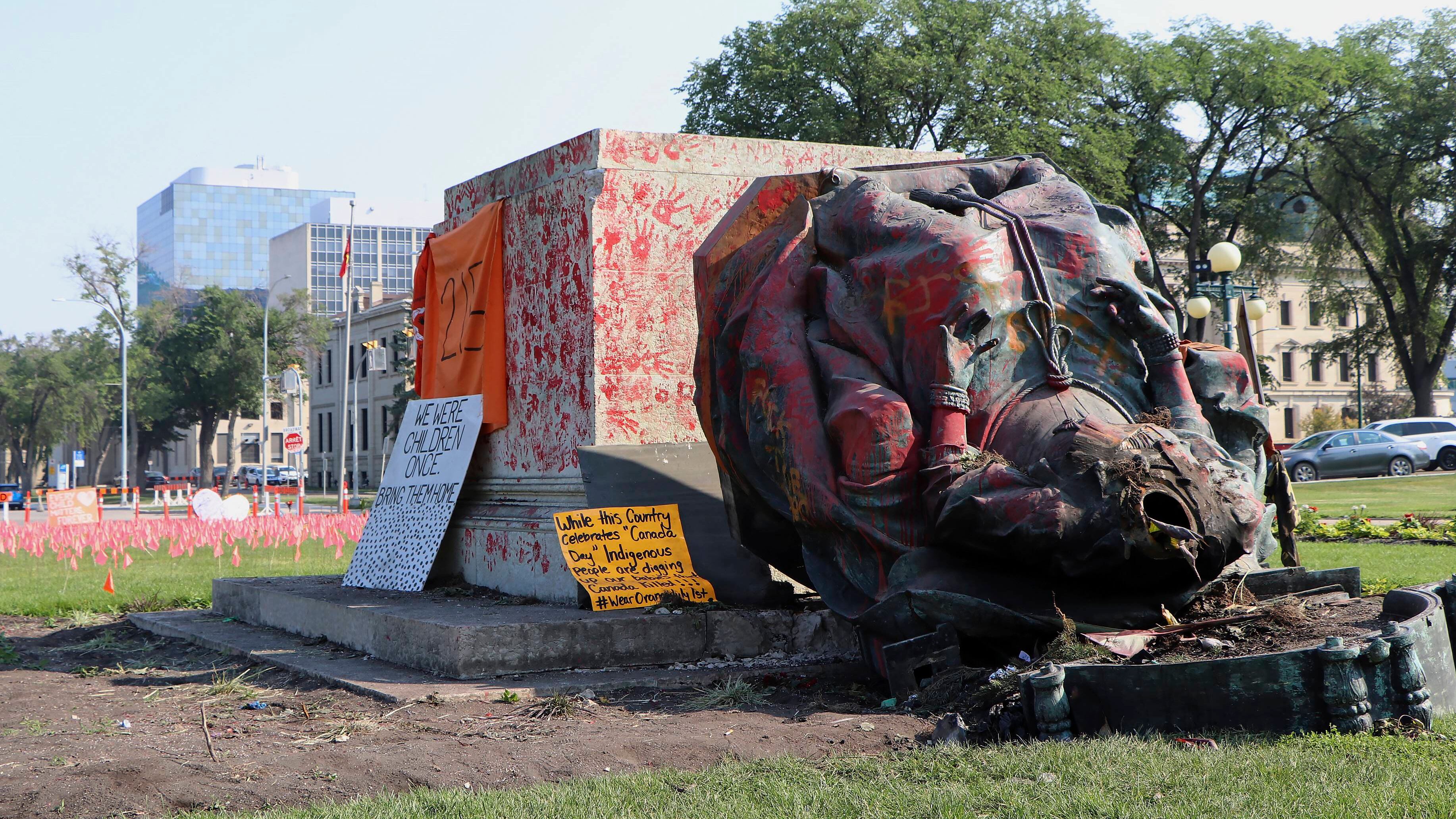 Una multitud de manifestantes a favor de los pueblos indígenas de Canadá han derribado las estatuas de la reina Victoria e Isabel II durante las manifestaciones por el Día de Canadá en la ciudad de Winnipeg por el trato dispensado a los pueblos originarios.
