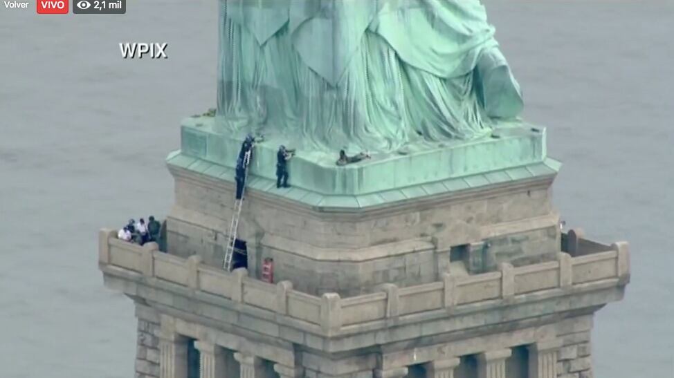 Varias personas que colgaron una pancarta pidiendo la abolición del Servicio de Inmigración y Aduanas (ICE, por sus siglas en inglés) desde el pedestal de la Estatua de la Libertad hoy, miércoles, fueron arrestadas y las autoridades dicen que una persona escala la base de la estatua.