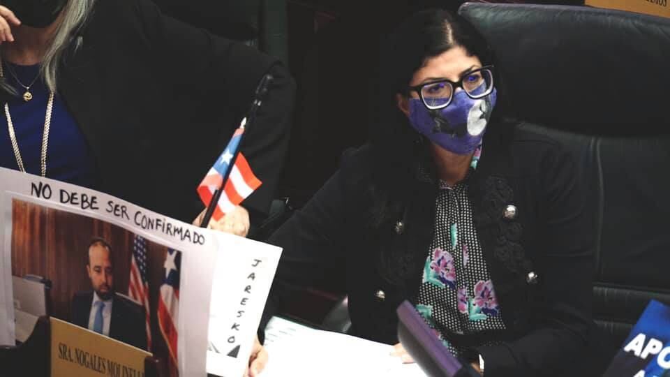 La representante Mariana Nogales sigue dando de qué hablar tras sacar una cartulina con la foto de Omar Marrero, quien podría ser aprobado como secretario de Estado en las próxima horas, denunciando que este no debe ocupar el puesto.