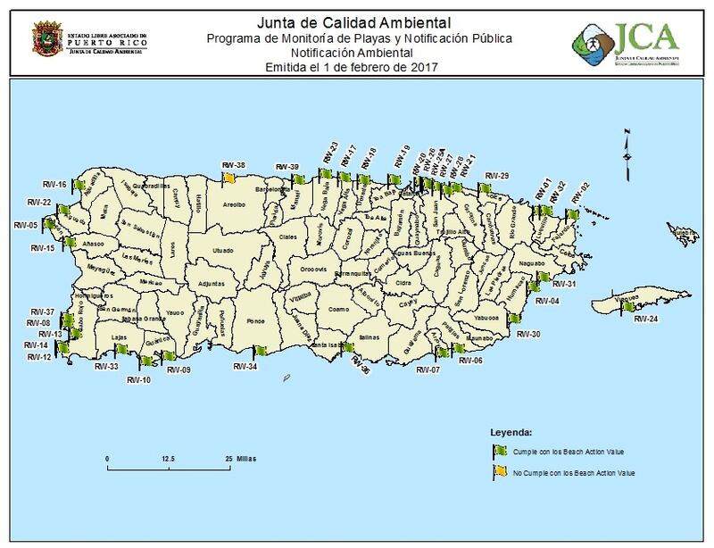 La Junta de Calidad Ambiental informó que una playa no está apta para bañistas debido a que se detectaron bacterias Enterococos en concentraciones que superan los parámetros de calidad determinados en los muestreos tomados los días 30 de enero y 1 de enero de 2017.