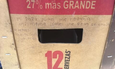 En un cartón de envases de cerveza había un recado donde una niña que se llama Camila pide auxilio, dice ser víctima de maltrato por parte de sus padres y que se quiere morir. Aún se desconoce la identidad de la menor, empero el mensaje causó revuelo e indignación al ser difundido en redes sociales.