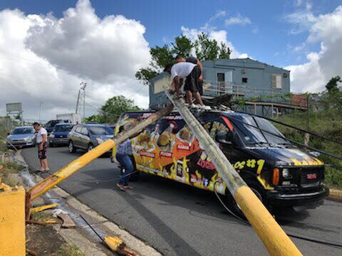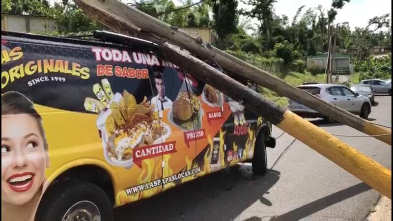 “En el día de hoy dos postes de la Autoridad de Energía Eléctrica localizados en el Barrio Maricao de Vega Alta colapsaron sobre nuestro vehículo mientras transitaba por la vía pública. Afortunadamente, nadie salió herido ya que los mismos cayeron sobre la van. Esto probablemente pudo haber ocurrido con personas que caminaban por el el lugar teniendo como desenlace una tragedia que lamentar”, lee el post de la página oficial de Facebook de las legendarias Papas Locas, negocio muy melaza de bajar monchis en el área de Vega Alta.