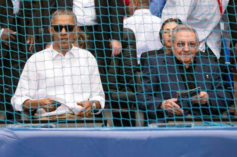 Obama vio el partido amistoso de béisbol entre la selección de Cuba y los Rays de Tampa Bay junto a su esposa, Michelle, y el presidente cubano, Raúl Castro, en el final de su histórica visita a la isla caribeña, la primera en más de ocho décadas de un gobernante estadounidense a la isla.