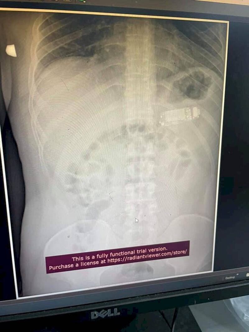 Fue operado de emergencia para que los ácidos del teléfono no se diluyeran en su interior.
