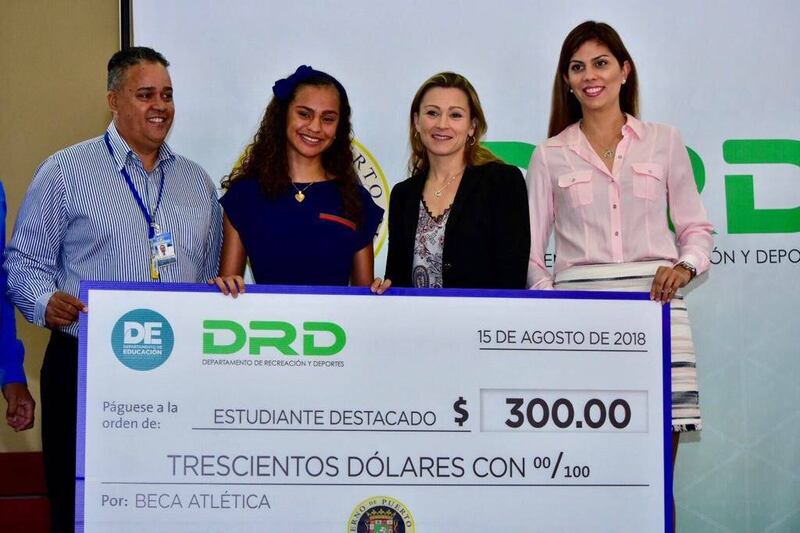 Con el fin de incentivar la participación deportiva entre los niños y jóvenes, la secretaria del Departamento de Recreación de Deportes (DRD), Adriana Sánchez Parés, junto a la secretaria del Departamento de Educación (DE), Julia Keleher, hicieron entrega de 100 becas a estudiantes de escasos recursos y con interés de practicar un deporte.