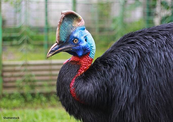 Los casuarios son ciertamente llamativos a la vista, con una cara azul vívida, dos barbas rojas (aletas de piel) que cuelgan de su cuello y un “casco” hueco, conocido como casco, sobre sus cabezas.