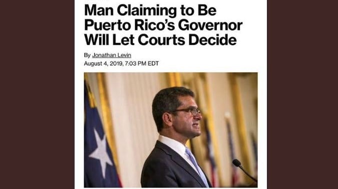 Uno de esos medios es Bloomberg, cuyo titular de anoche en su versión web califica a Pedro Pierluisi como “el hombre que dice ser el Gobernador de Puerto Rico”, mientras reseña que Pierluisi irá a buscar el aval de los tribunales para permanecer en Fortaleza.