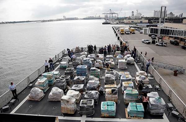 Los decomisos totalizaron 18.5 toneladas, informó la fuerza en un comunicado de prensa. El barco patrulla Hamilton llevó la droga recién confiscada a Port Everglades, en el sur de Florida.