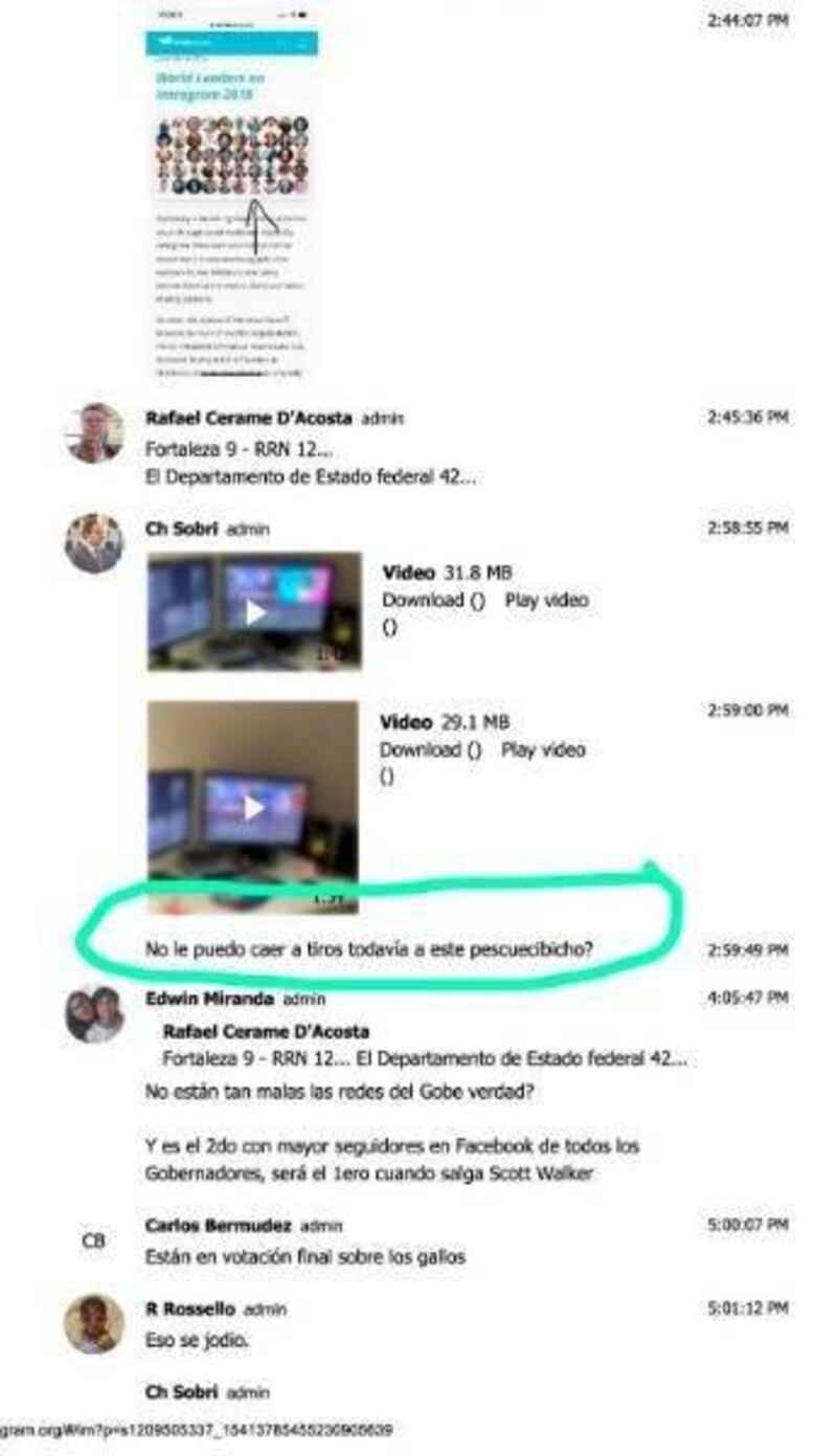 “Estoy salivando para caerle a tiros”, escribió el representante del Gobierno en la Junta de Control Fiscal. “¿No le puedo caer a tiros todavía a este pescuecibicho?”, añadió en otro momento.