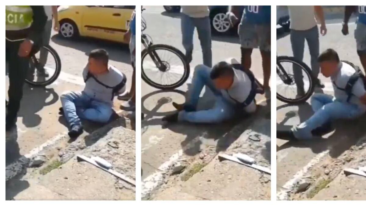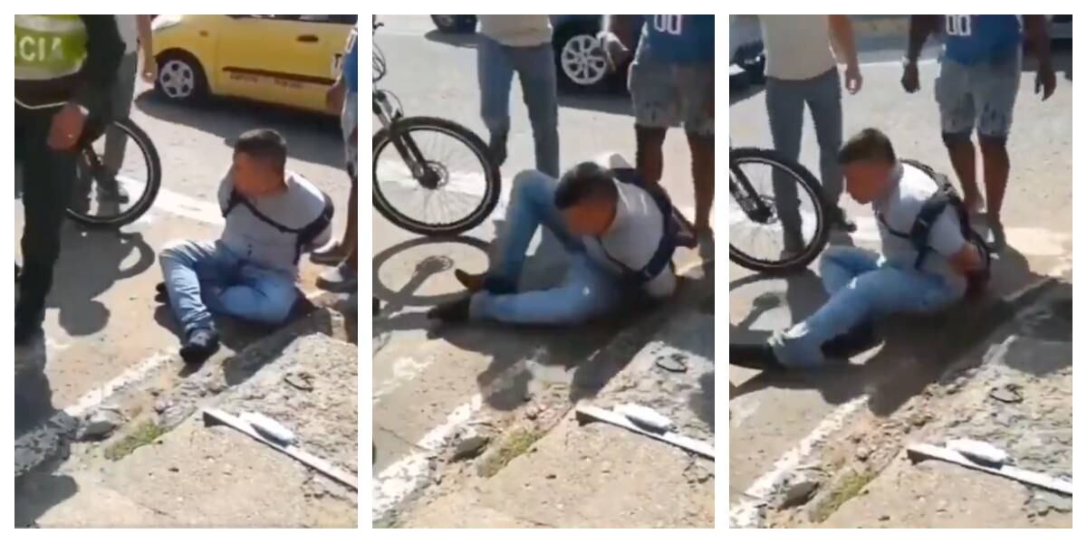 Segundos después, uno de los biciusuarios presente en la escena decide golpearlo con una de las ruedas de su vehículo.