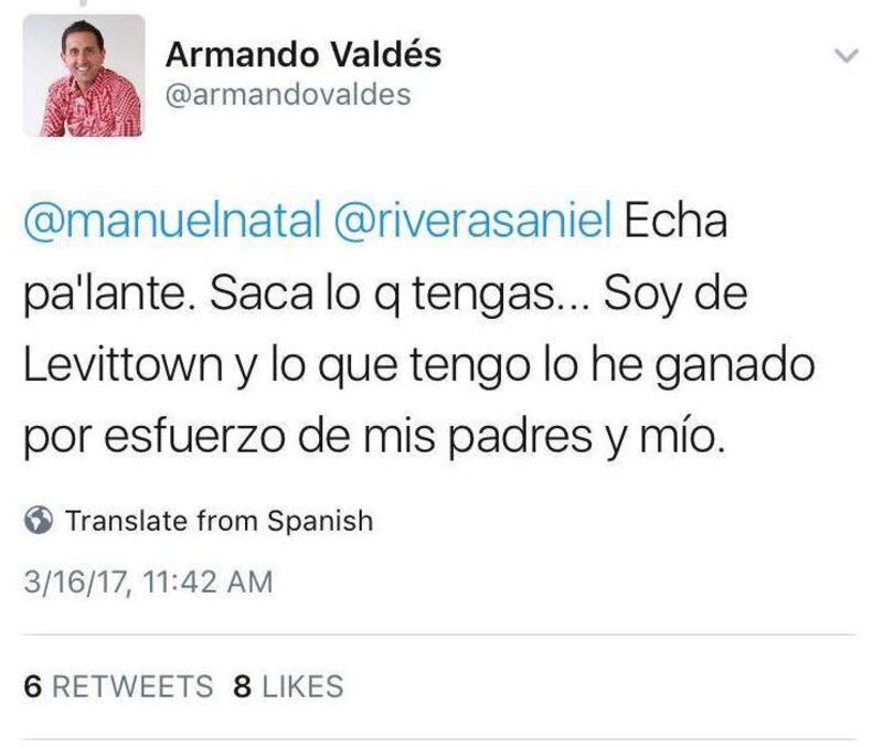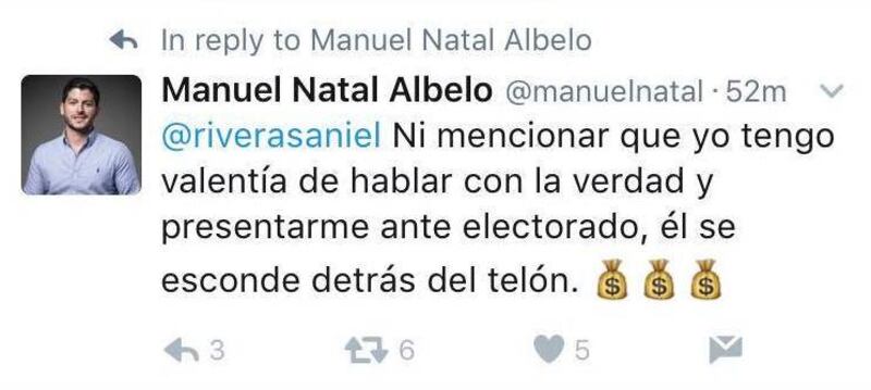 El estratega político popular Armando Valdés y el representante Manuel Natal se tiraron con todo en Twitter cuando uno acusó al otro de lucrarse del Partido y tener miedo de enfrentar al electorado.