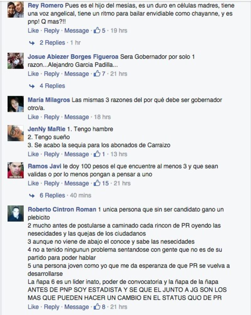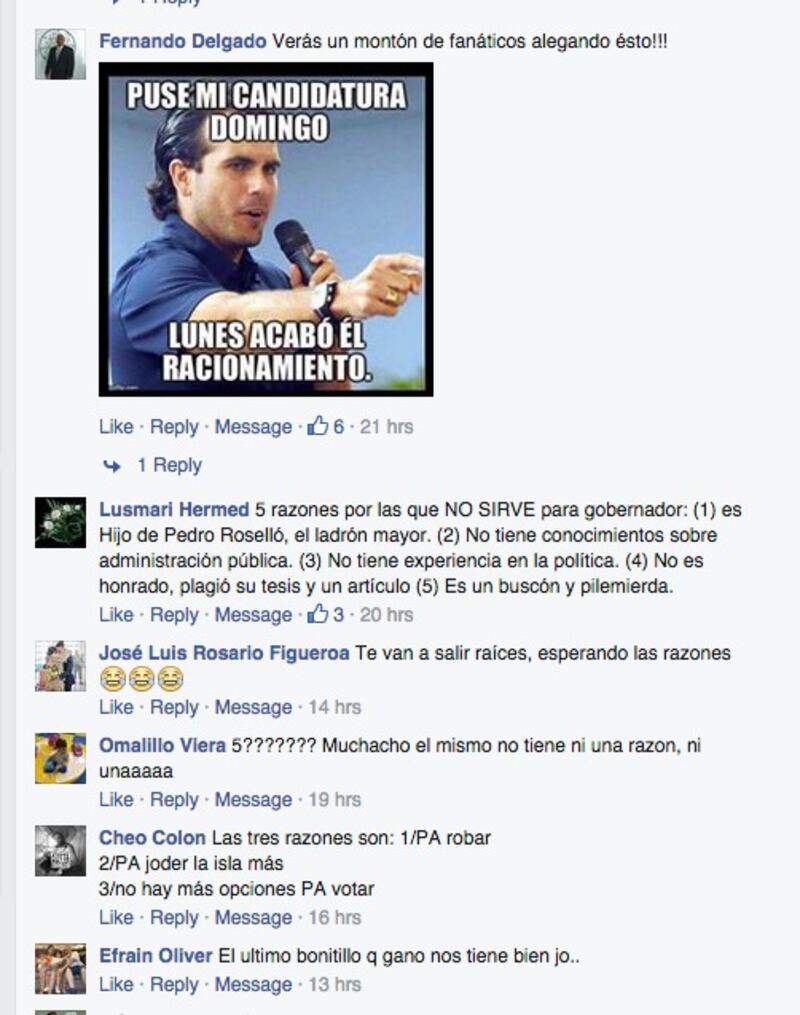 Hasta el momento, esa ha sido la única persona que dio las cinco razones apoyando al científico, lo que levantó una despiada ola de 'photo comments' sobre el menor de la familia Rosselló.