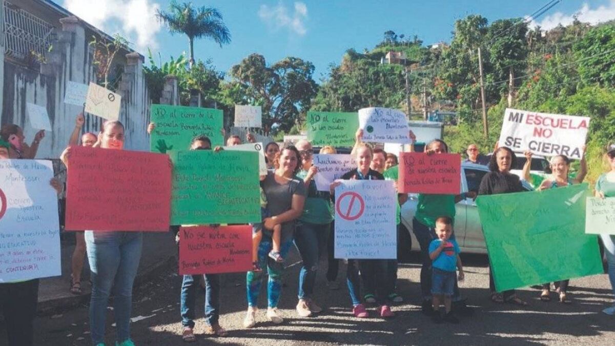 De igual forma, madres, madres y estudiantes de la Escuela Amino Tió de Malaret de San Germán se manifestaron frente al plantel amenazado de cierre por el Departamento de Educación.