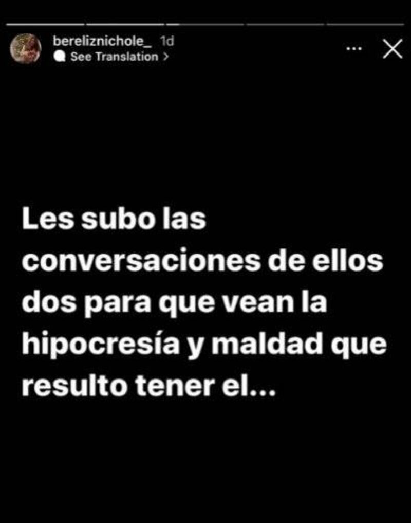 En otro ’post’, Bereliz escribió: “Yo no te la confié, simplemente eras familia y eso es lo más que me duele”.