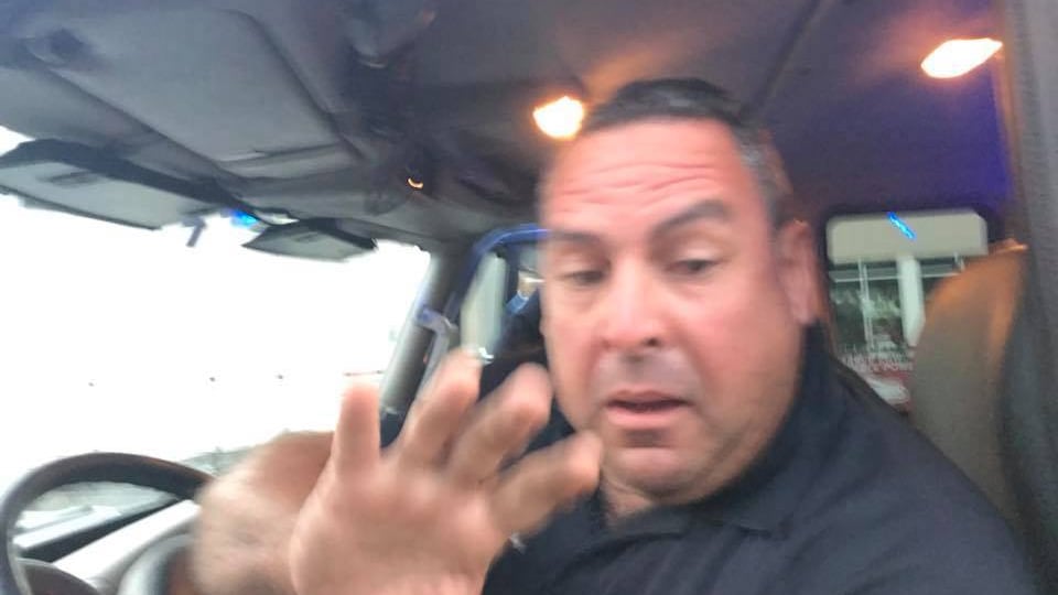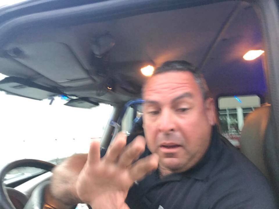 Imagen del chofer de la grúa, compartida en las redes sociales.