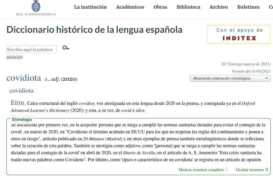 “Persona que se niega a cumplir las normas sanitarias dictadas para evitar el contagio de la covid”, lee la definición de covidiota en la RAE.