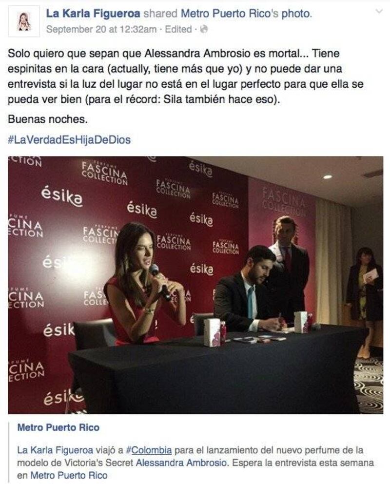 Déjenme contarles, estuve en Colombia porque una compañía de perfumes le pagó el pasaje a diferentes periodistas para que fueran parte del lanzamiento del mismo. Durante el evento, tendríamos la oportunidad de hablar unos minutos con Alessandra Ambrosio, quien es la imagen de la fragancia y uno de los “ángeles” de la (ridículamente cara) marca de panties y brasieres.