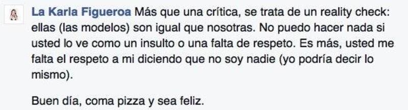 “Buen día, coma pizza y sea feliz”. Así culminé una discusión que tuve con una lectora ofendida porque, según ella, no me expresé de manera positiva de una modelo de Victoria Secret.