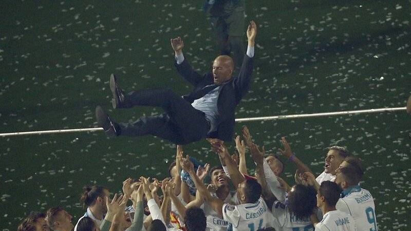 Zidane ganó nueve títulos como entrenador del Madrid, incluidas las tres Ligas de Campeones, uno de la Liga española, una Súpercopa de España, dos Supercopas de la UEFA y dos Copas Mundiales de Clubes.