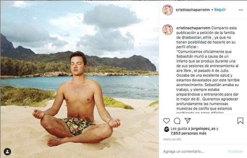 “Comparto esta publicación a petición de la familia de @sebastia_athie, ya que no tienen posibilidad de hacerlo en su perfil oficial: ‘Comunicamos oficialmente que Sebastián murió a causa de un infarto que se produjo durante una de sus sesiones de entrenamiento al aire libre el pasado 4 de julio. Gozaba de una excelente salud y estamos devastados por este terrible acontecimiento. Sebastián amaba su trabajo y siempre estaba preparándose y entrenando para dar lo mejor de él. Queremos agradecer profundamente las numerosas muestras de cariño que estamos recibiendo en estos difíciles momentos\’
