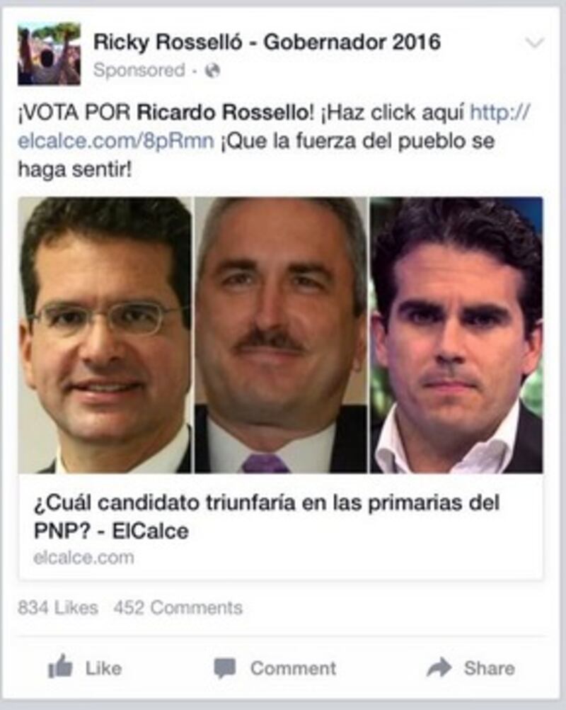 En la encuesta participaron sobre 8,000 usuarios, y el equipo de Rosselló pagó a través de Facebook para promocionar entre sus seguidores la votación.