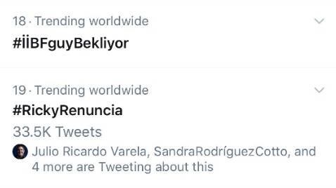 El pedido de renuncia al gobernador Ricardo Rosselló ya es Top 20 en las tendencias de Twitter a nivel mundial y #2 en los Estados Unidos.