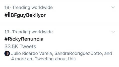 El pedido de renuncia al gobernador Ricardo Rosselló ya es Top 20 en las tendencias de Twitter a nivel mundial y #2 en los Estados Unidos.