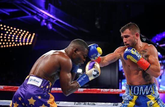 La primera pelea en la historia del boxeo de dos púgiles campeones olímpicos que buscaban el título como profesionales no tuvo más protagonista que a Lomachenko, de 29 años, que dominó de principio a fin el combate.