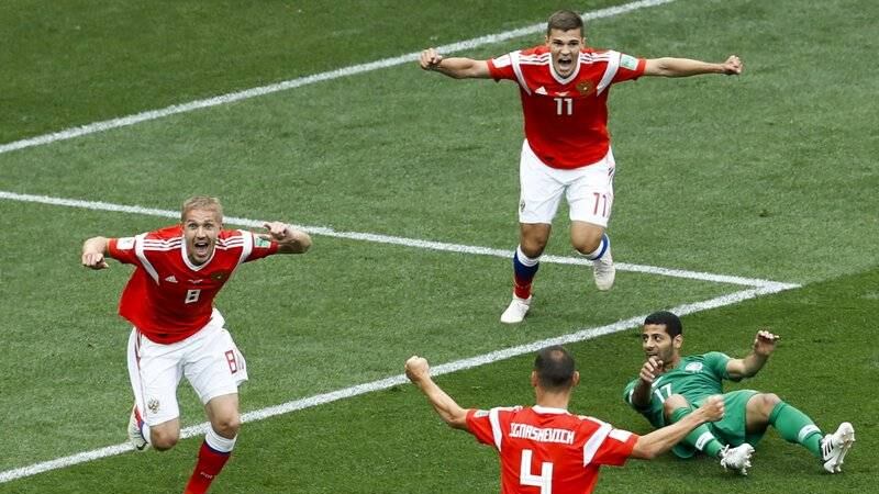 Dos goles brillantes de Denis Cheryshev, los cabezazos Yuri Gazinsky y Artem Dzyuba y un tiro libre de Alexandr Golovin alegraron la inauguración para los rusos, que llegaron al Mundial inmersos en una racha de siete partidos sin ganar. Golovin también fue el asistente en los tantos de Gazinsky y Dzyuba.
